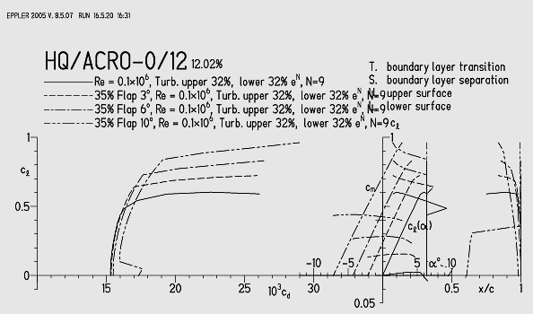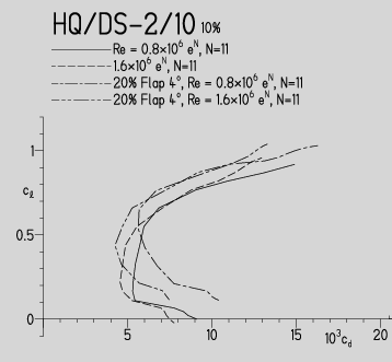 Die HQ/DS-Profile wurden so konzipiert, dass sich bei ihnen der Einsatz von Wölbklappen mehr als bei meinen anderen HQ-Profilen bemerkbar macht. Beim HQ/DS-2/10-Profil zeigte sich, dass eine Ruder- und