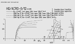 Dagegen läge die untere Re-Zahlgrenze an den Flächenenden bei etwa Re=100.000. Weil die Strömungsstabilität des HQ/DS-2/10-Profils bei solchen Re-Zahlen nicht so gut ist, wurde im letzten Flächentrapez zum Flügelende hin auf das strömungsstabilere Profil HQ/ACRO-2/10 gestrakt.