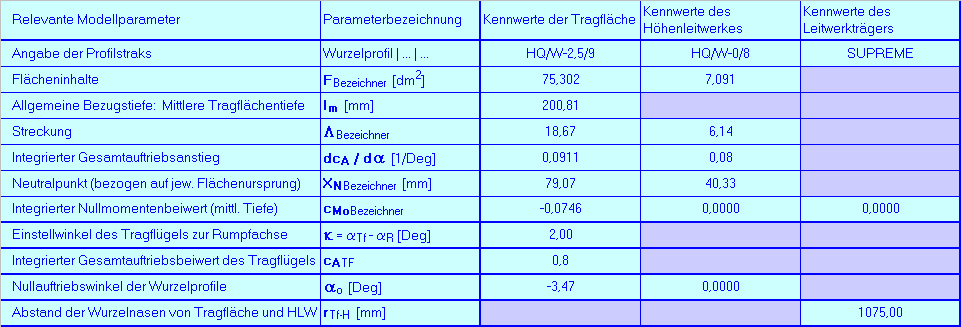 flugmechanischen Besonderheiten des F3J-SUPREME wieder, die