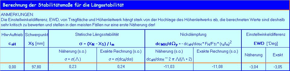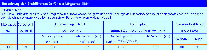 Charakteristika der Längsstabilität wurden so gewählt, dass der
