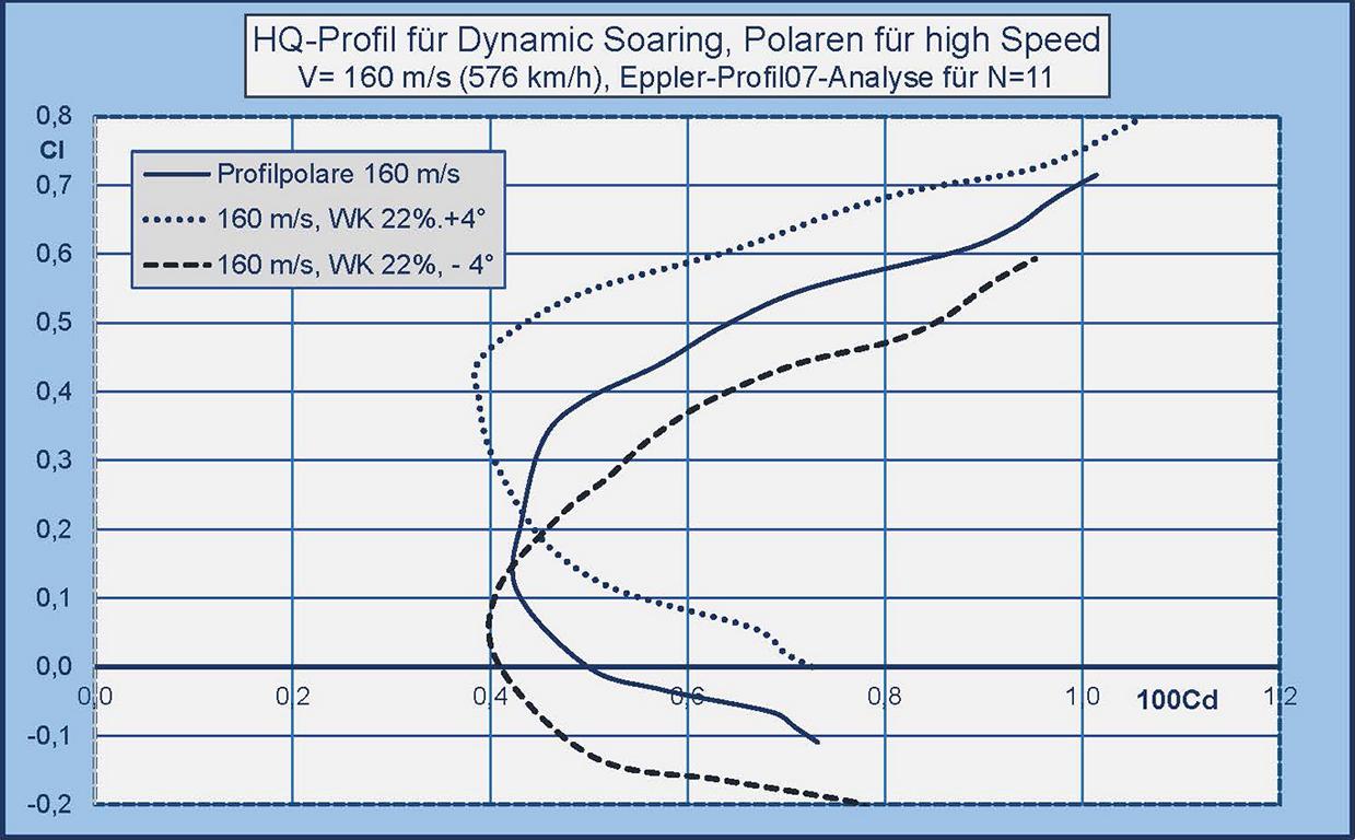 Tragflächenprofils für Fluggeschwindigkeiten von V = 80 m/s, 160 m/s