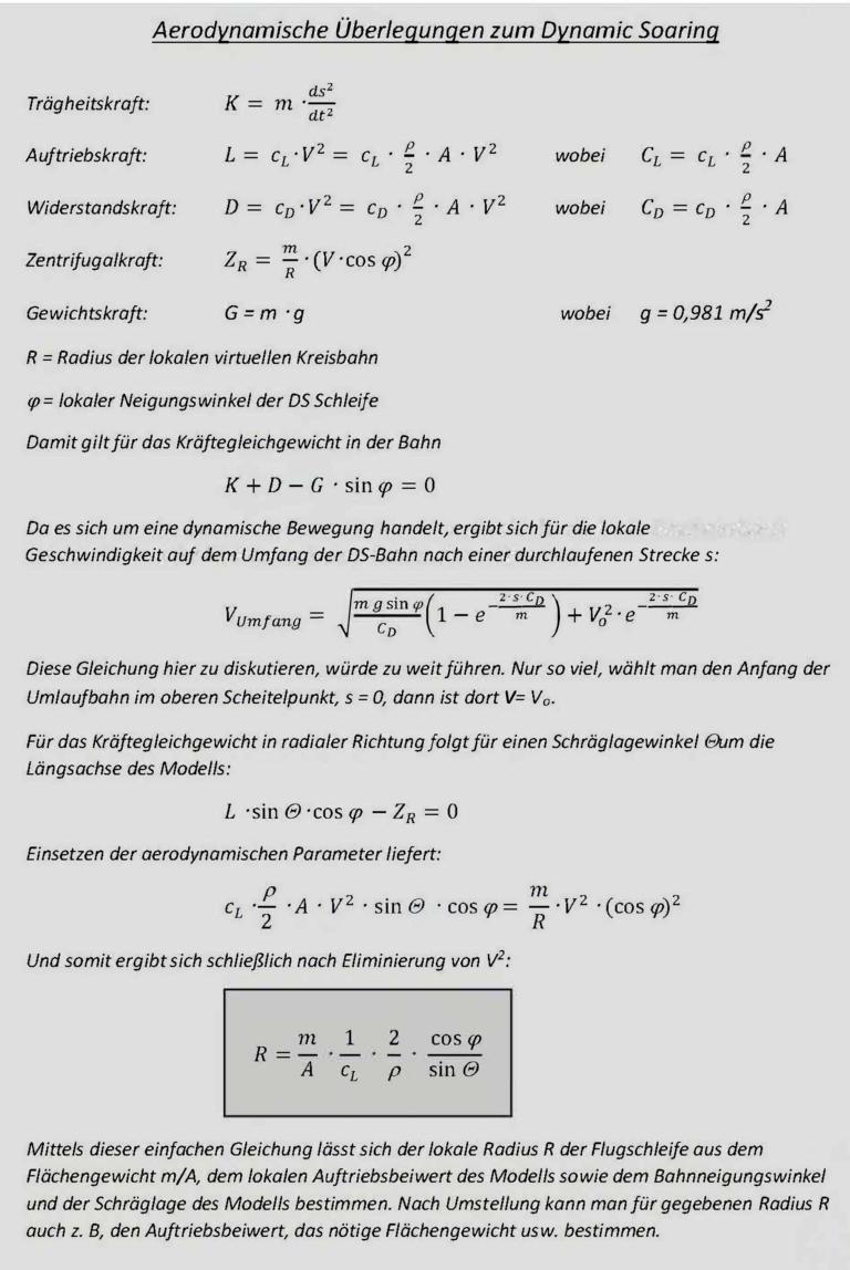 Radius der DS-Flugbahn. Dazu bedarf es einiger aerodynamischer und